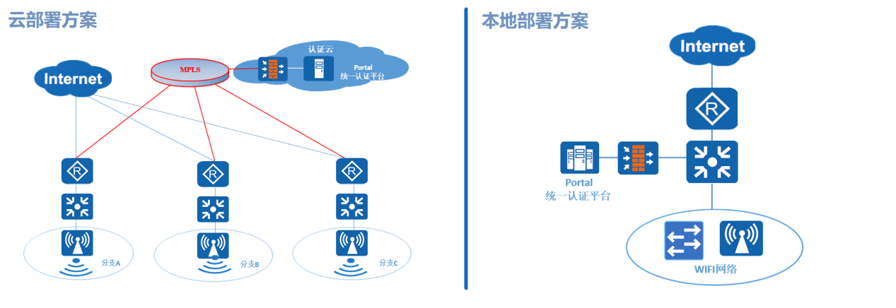 泊投Portal认证平台主要由Portal服务器和Radius服务器组成,产品适用于各种网络环境,支持本地私有云部署,同时支持共有云平台部署。